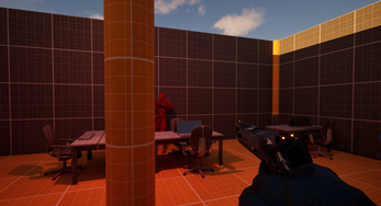 Le joueur incarne un agent en vue FPS armé d’un pistolet et doit progresser dans une map composée de plusieurs zones, avec des cibles aléatoires :